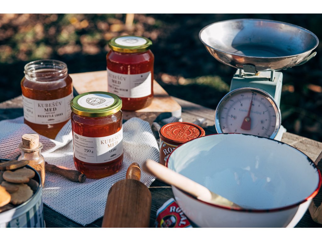 Ochutnejte Kubešův lahodný med rozkvetlá louka. Nektar z květů pampelišky, dymnivky, vrby a ovocných stromů sbíraný včelami z Jeseníku. Sklenice 750 g ⭐