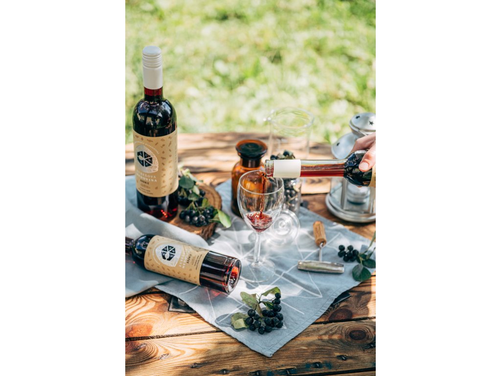 Čerstvé plody aronie trháme a zpracováváme sami. Toto přirozeně velmi suché ovoce dává v lisu málo šťávy, o to větší množství cenných tříslovin a antioxidantů však obsahuje. Společnou fermentací s květovým medem vzniká méně sladká medovina. Výsledek představuje exkluzivní druh melomely. Ovocitá chuť má v prvním roce potenciál dalšího zrání s tendencí k harmonizaci všech složek.