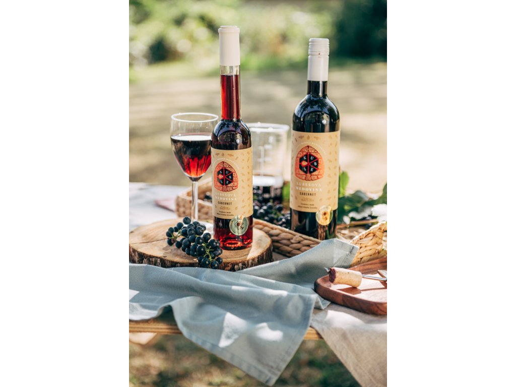 Základ této specifické medoviny tvoří květový med. Přidáváme k němu 45 % vinného rmutu odrůdy Cabernet Moravia z jihomoravských Hovoran. Živá směs pecek, slupek a šťávy kvašená s medovým roztokem vytváří typickou tmavou barvu. Ponecháním hroznových slupek během úvodní části kvašení přechází barviva a třísloviny do finálního moku. Druhé přelisování a oddělení slupek a pecek od kvasu ohraničuje další fermentaci. Nápoj s chutí červeného vína postrádá typickou tvrdost suchých červených vín. Má potenciál zrání, při němž se objevuje nádech portského vína. Medovina ztrácí ovocitost a buduje si mohutné tělo.
