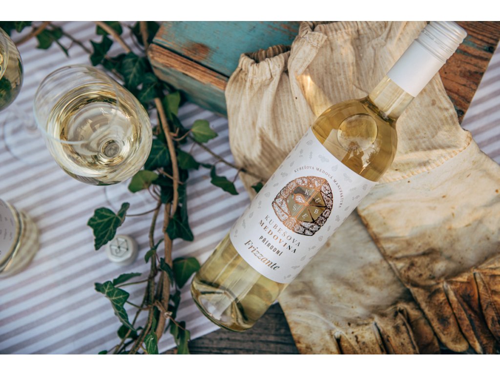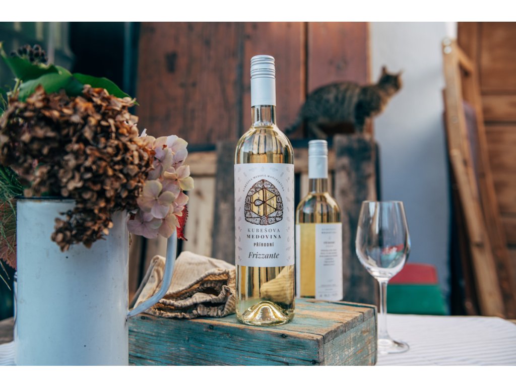 Ochutnejte Kubešovu medovinu ⭐ Medovina Frizzante přírodní, světle zlatavé barvy. Ucítíte květy, limetku a mučenku. Osvěžující a jemně perlivá. Lahev 0,75 l ✅