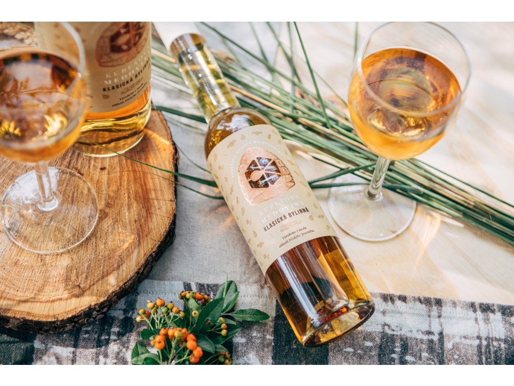 Ochutnejte Kubešovu medovinu ⭐ Medovina klasická bylinná, růžovooranžové barvy vyrobená macerací různých druhů bylin a koření. Krásně prohřívá. Láhev 0,75 l ✅