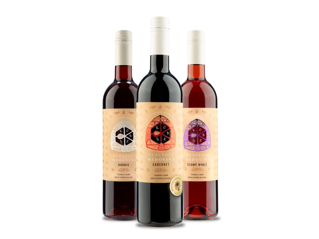 Dopřejte sobě nebo blízkým ⭐ Kubešovy skvělé medoviny ve výhodném Přírodním setu 3 x 0,75 l. Medovina Cabernet, Arónie a Černý rybíz ✅