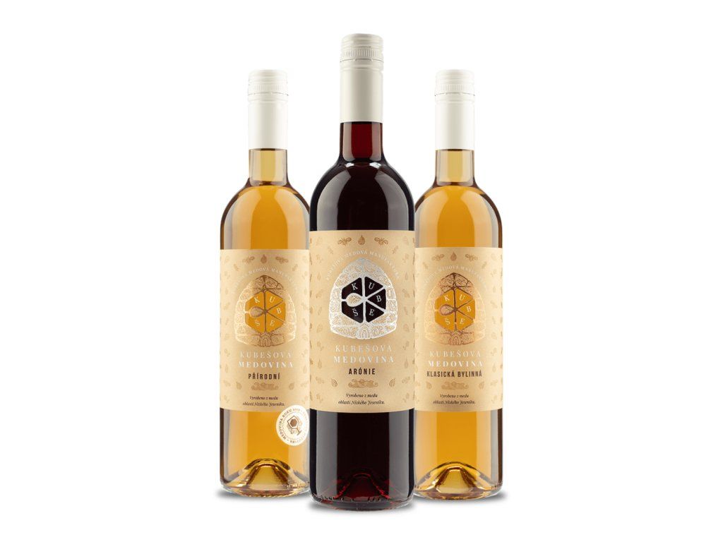 Dopřejte sobě nebo blízkým ⭐ Kubešovy skvělé medoviny ve výhodném setu Vánoční pohoda  3 x 0,75 l. Medovina Klasická bylinná, Přírodní archivní a Aronie ✅