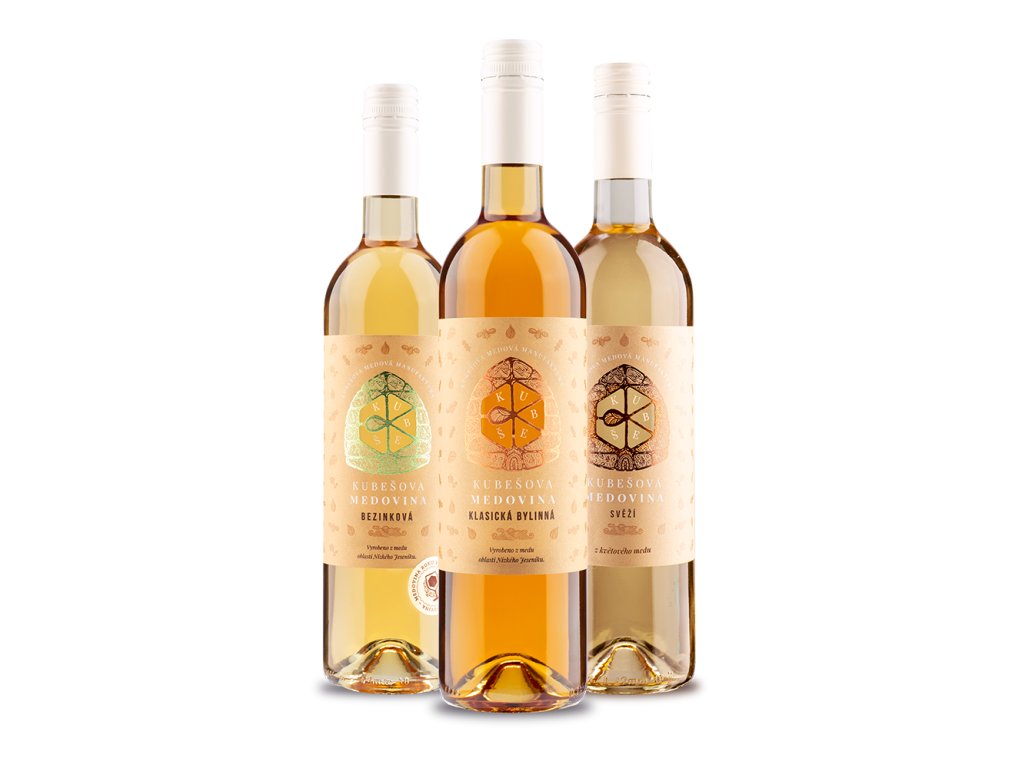 Dopřejte sobě nebo blízkým ⭐ Kubešovy skvělé medoviny ve výhodném Zimním setu 3 x 0,75 l. Medovina Přírodní svěží, Klasická bylinná a Bezinková. ✅